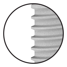 Aggressive thread profile improves fixation and primary stability during placement in dense cortical bone.